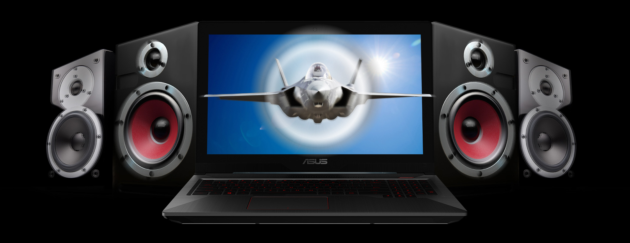 FX503 има вградени високоговорители, поставени така, че да възпроизвеждат звука директно срещу Вас. С помощта на технологията ICEpower®, този интелигентeн процес осигурява наистина вълнуващо изживяване при слушане и игра, а звукът е мощен и чист.